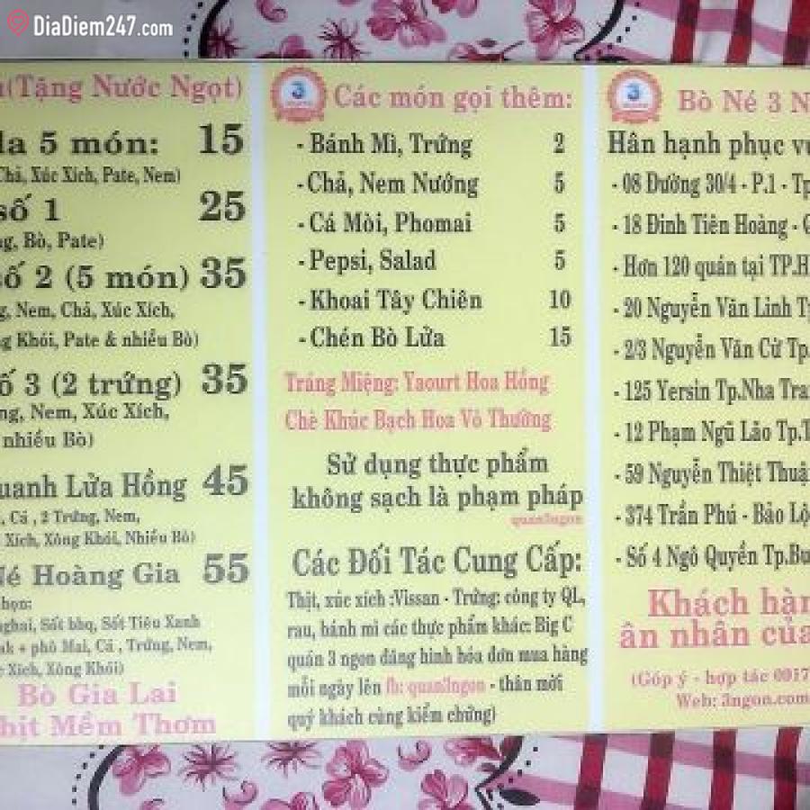 ➊ Địa chỉ của Bò Né 3 Ngon - Bò Quanh Lửa Hồng - 30 Tháng 4?