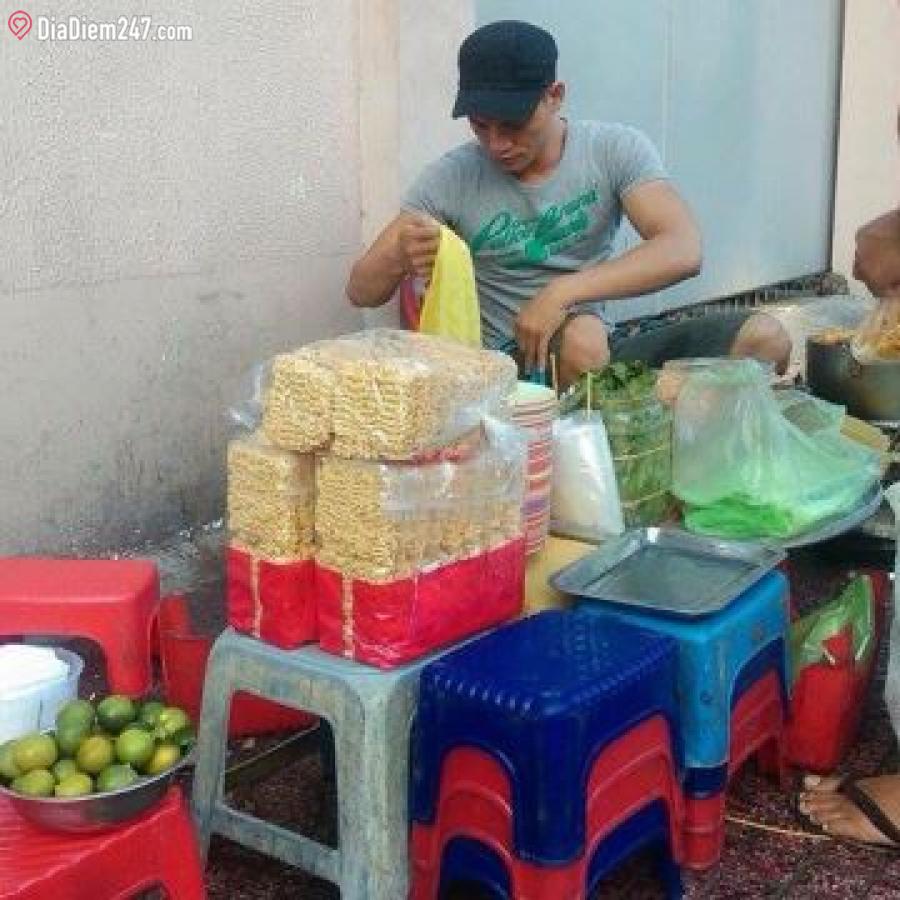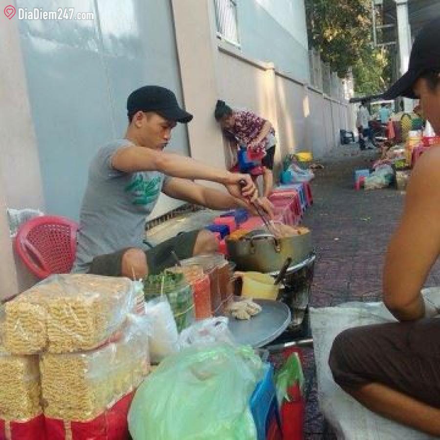 Quán ăn vặt vỉa hè, không gian thoáng mát.
