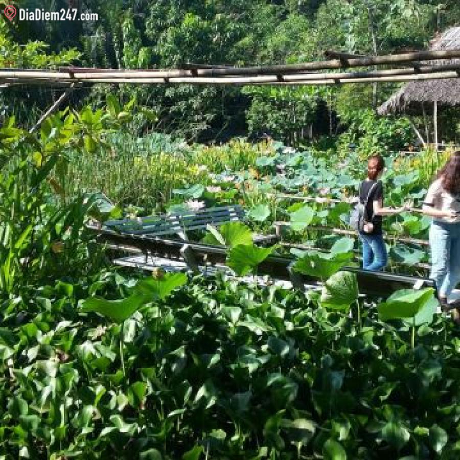 Bao gồm nhà hàng, quán cafe, ao câu cá