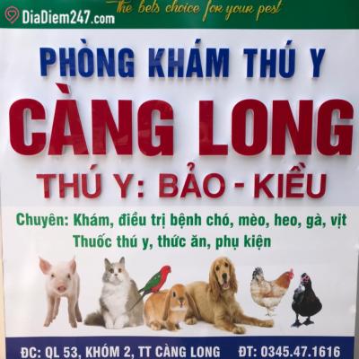 Nơi đây hiện tại đang là một trong những cơ sở uy tín được lãnh đạo bởi bác sỹ thú y Bảo và bác sỹ thú y Kiều có nhiều kinh nghiệm, cực kỳ tâm huyết và có trình độ cao. Phòng khám thú y Càng Long có dịch vụ khám, điều trị bệnh chó, mèo, heo, gà, vịt; tắm gội, cạo lông, tắm ve; tẩy giun; truyền dịch;... Ngoài ra, nếu thú cưng nhà bạn đang thiếu thuốc thú y, thức ăn và những đồ phụ kiện xinh xắn thì phòng khám cũng sẵn sàng phục vụ.